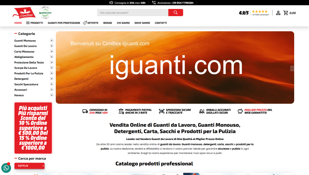Scopri iGuanti.com, l’e-commerce ufficiale di Cimiltex Srl, azienda con oltre 30 anni di esperienza nella vendita di guanti da lavoro, guanti monouso e dispositivi di protezione individuale (DPI). Con un catalogo di oltre 200 modelli pronti per la spedizione, iGuanti.com è il punto di riferimento per professionisti e aziende che cercano qualità, sicurezza e convenienza.