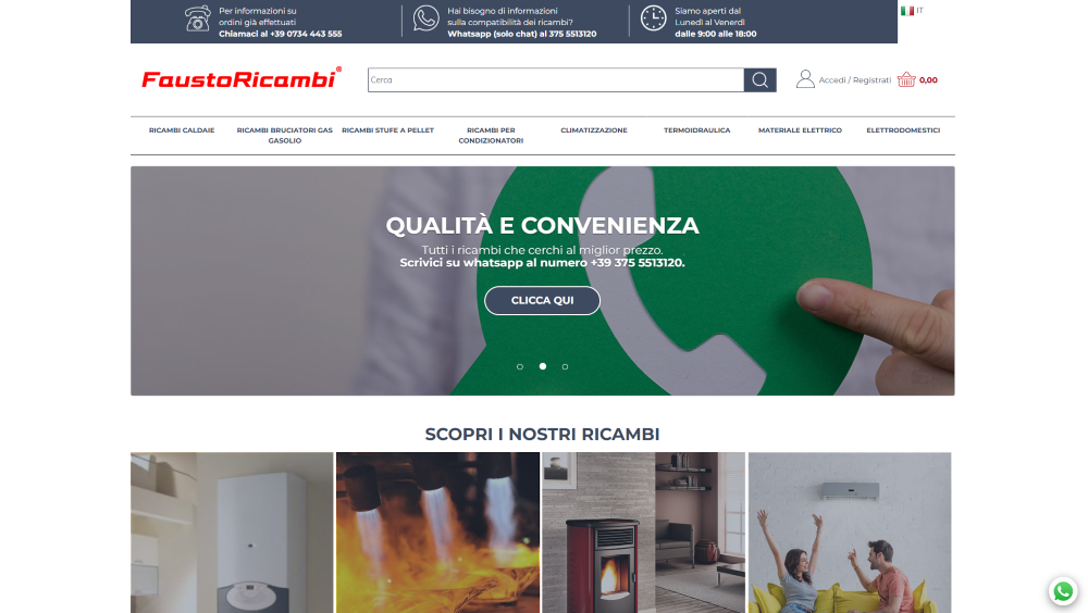 Scopri FaustoRicambi.it, l'e-commerce italiano specializzato nella vendita di ricambi termotecnici per caldaie, bruciatori, stufe a pellet, climatizzatori, impianti solari ed elettrodomestici. Con un catalogo vasto e in costante aggiornamento, FaustoRicambi.it è il punto di riferimento per professionisti del settore e clienti privati alla ricerca di componenti affidabili e di qualità.